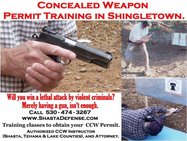 To Register for a class, or advise of date convenient for you, please call: 530-474-3267